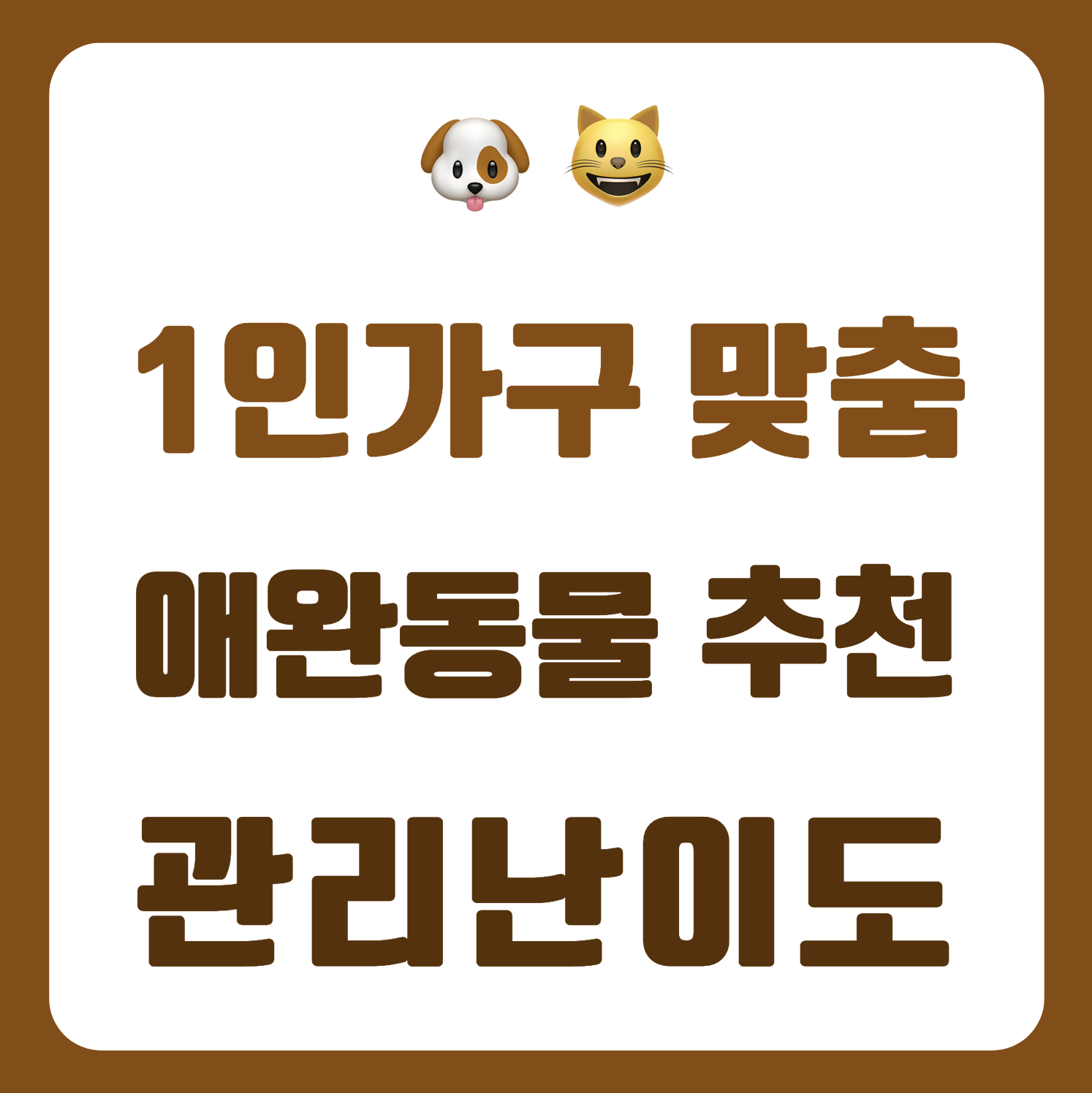 1인 가구도 충분히 반려동물과 따뜻한 시간을 보낼 수 있습니다. 중요한 건 나의 라이프스타일과 성향, 책임감을 바탕으로 올바른 선택을 하는 것입니다.